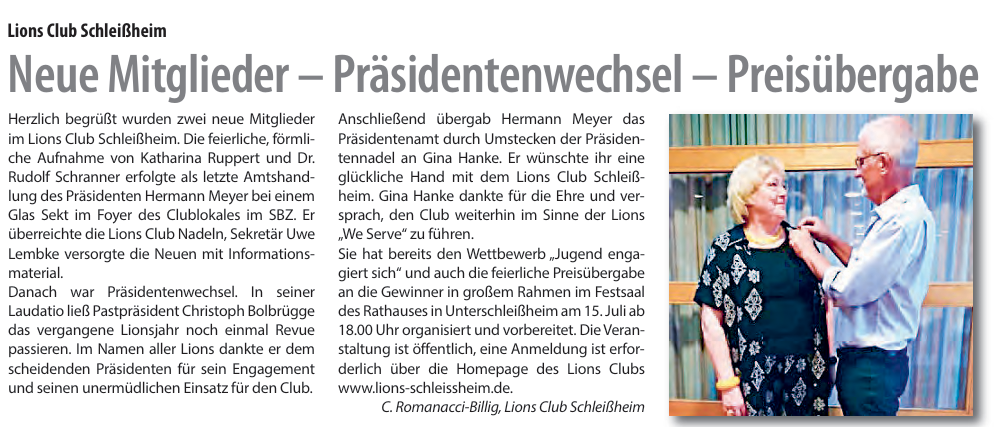 · Mitgliedschaft im LIONS-Club Schleißheim